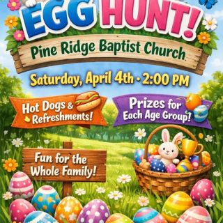 Bring the whole family and join us for a fun afternoon at Pine Ridge Baptist Church for our Easter Egg...