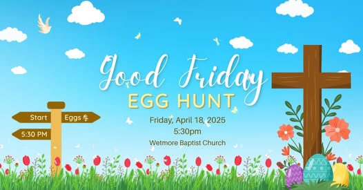 We invite you to join us for our annual Good Friday Easter Egg Hunt on Friday, April 18th, starting at 5:30pm. A time for fun activities, an egg hunt, food, and most importantly a short story of why we celebrate Good Friday! Kids all ages are welcome to participate in the egg hunt. Bring your family and be sure to come celebrate with us!