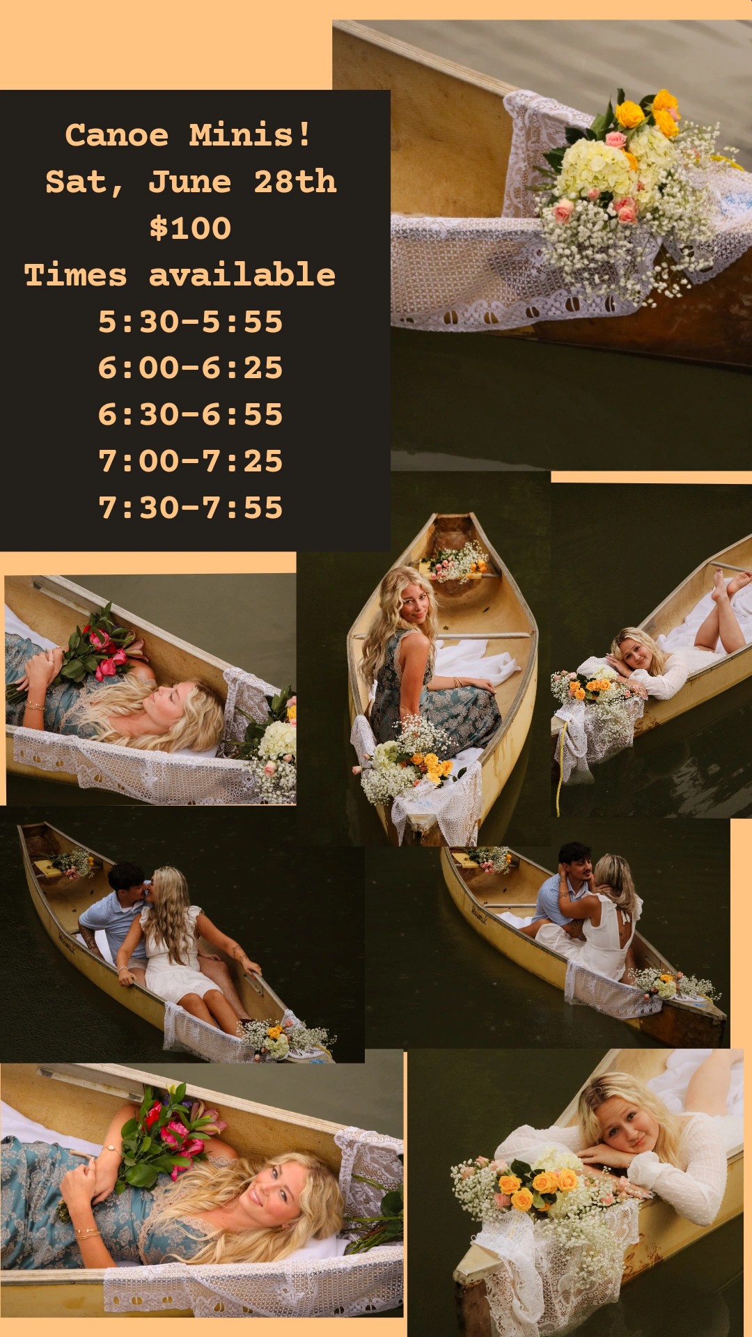6/28 Canoe Minis by Cambree Hey guys canoe minis is Sat, June 28th! Book your spot! Reach out here to book Cambree Milen