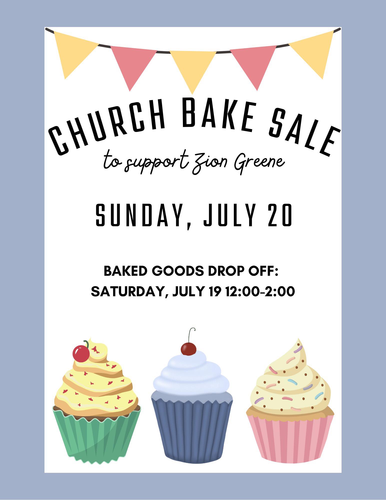 Stop by after service to purchase delicious treats prepared by our church family. All proceeds will go directly to support Zion Greene.