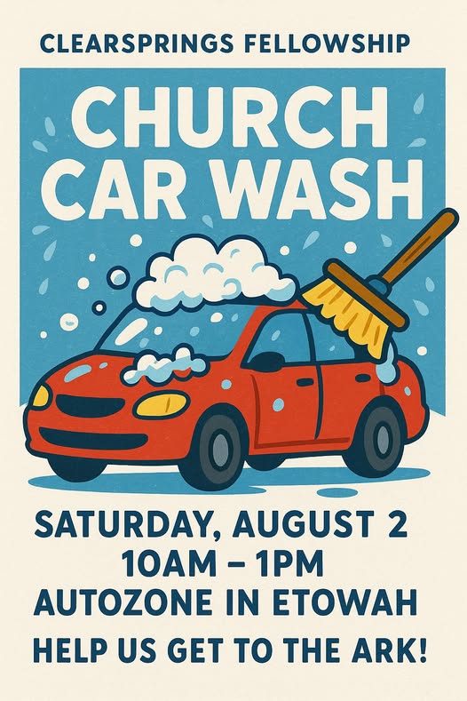 will be hosting a car wash on August 2nd from 10am-1pm (or later if needed) at the Auto Zone in Etowah to help raise money for our upcoming church trip to the Ark Encounter. Any donations are gladly appreciated. We also have tickets available for purchase if you’d like to donate ahead.